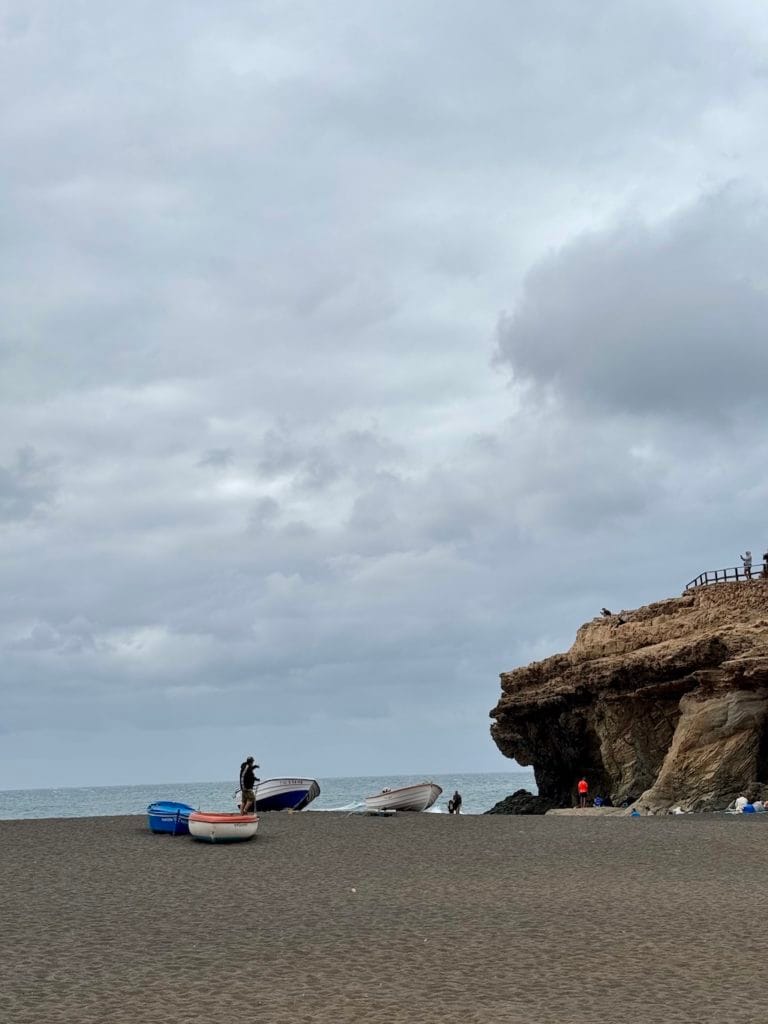 O kúsok ďalej leží Playa del Águila (link na mapu) – ešte pokojnejšia, menej navštevovaná a divokejšia. S karavanom zaparkovaným vysoko nad útesom som mal výhľad, ktorý by som nevymenil za žiaden.