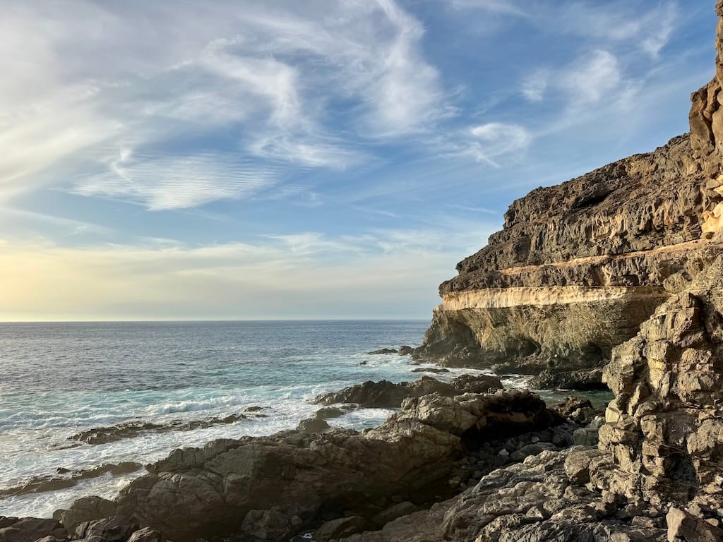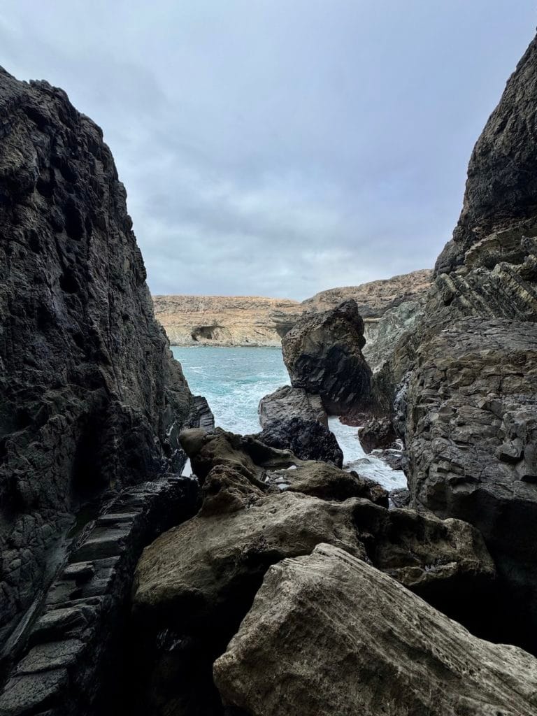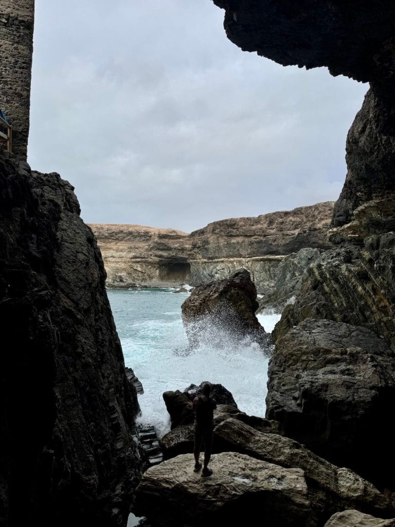 Na západnom pobreží ma čakalo jedno z najikonickejších miest ostrova – Ajuy. Už samotná pláž s čiernym vulkanickým pieskom je miniatrakcia. Ale to pravé začína až spoznávaním útesov.