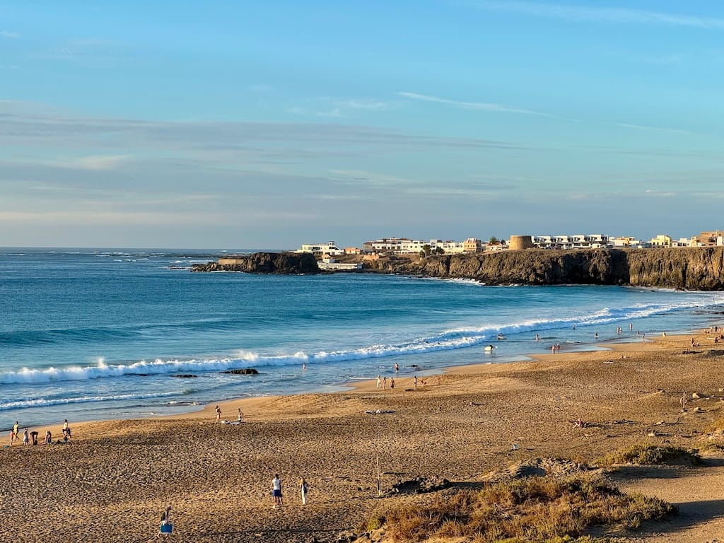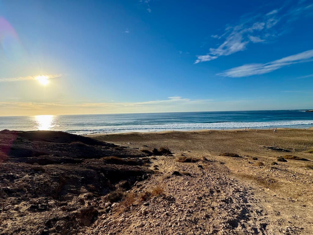 Prvá zastávka: El Cotillo. Už samotný presun k Playa de Esquinzo je malým dobrodružstvom – prašná cesta, minimálna premávka, len sem-tam iný karavan alebo surfer. A potom to príde: obrovský otvorený horizont, nekonečný oceán a pocit, že ste sa ocitli na konci sveta.