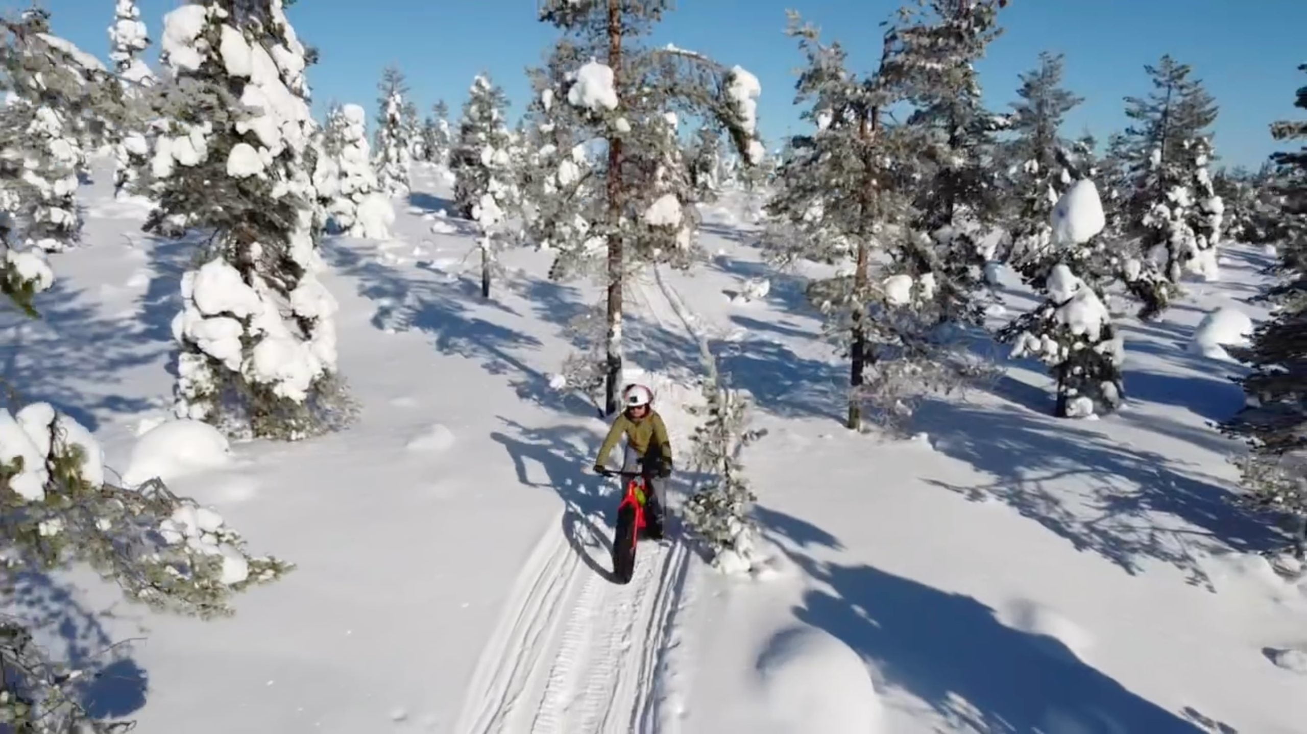Vychutnávam si jazdu fatbajkom krajinou zaliatou slnkom a množstvom snehu. Niečo také som ešte nezažil a ani netušil, že zimná bajkovačka môže byť takto úžasná. Prvých desať kilometrov si iba vychutnávam zimný trail, výhľady, slnko a poriadny mráz, ktorý ešte umocňuje rýchlosť. Z toho všetkého zabúdam fotiť a natáčať, spamätám sa až približne v polovici.